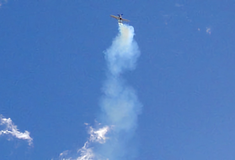 This shows the aircraft hanging in the air, using the lift of the propeller, after a vertical climb.